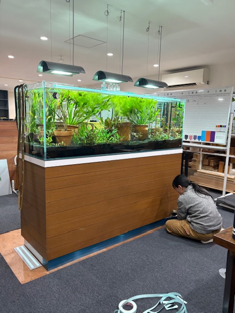 いよいよ我が社の事務所もリニューアルすることになりました😊訪問されるお客様が居心地よく感じていただけるように落ち着ける空間を目指します❗️いわゆる昭和のオフィスから、お洒落なショウルームみたいになったらいいな💓まずは水槽台から地道にリフォームしていきます。